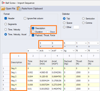 We've had lots of feedback about importing Time vs Velocity sequences with many samples without having any option to give each sample a 'Description'. Good point and long overdue. So finally, it is added.